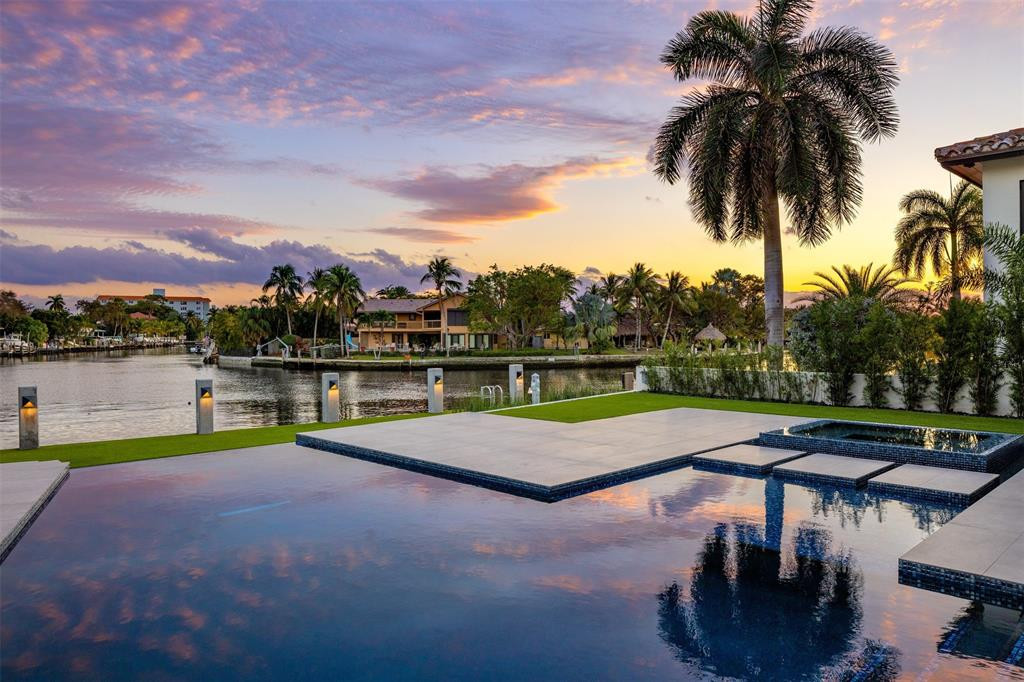 Ultra luxurious waterfront estate sited along a quiet cul de sac in Coral Ridge. Newly constructed and sophistically crafted using the finest materials and finishes. Attention to detail is seen throughout with seamless transitions, hidden doors, creative infinity pool design, and endless water views from most every room. Equipped with an elevated 54 foot powered concrete dock, covered outdoor kitchen, and lavish overflowing spa and sun lounge area. Other features include:Italian porcelain wall cladding, custom mill work paneling, 10 foot glass sliders, Wolf/Subzero appliances, Lutron lighting, Sonos sound system, upstairs loft bar, bedroom breakfast bar, walk in Italian closets, office/gym, and custom vanities.